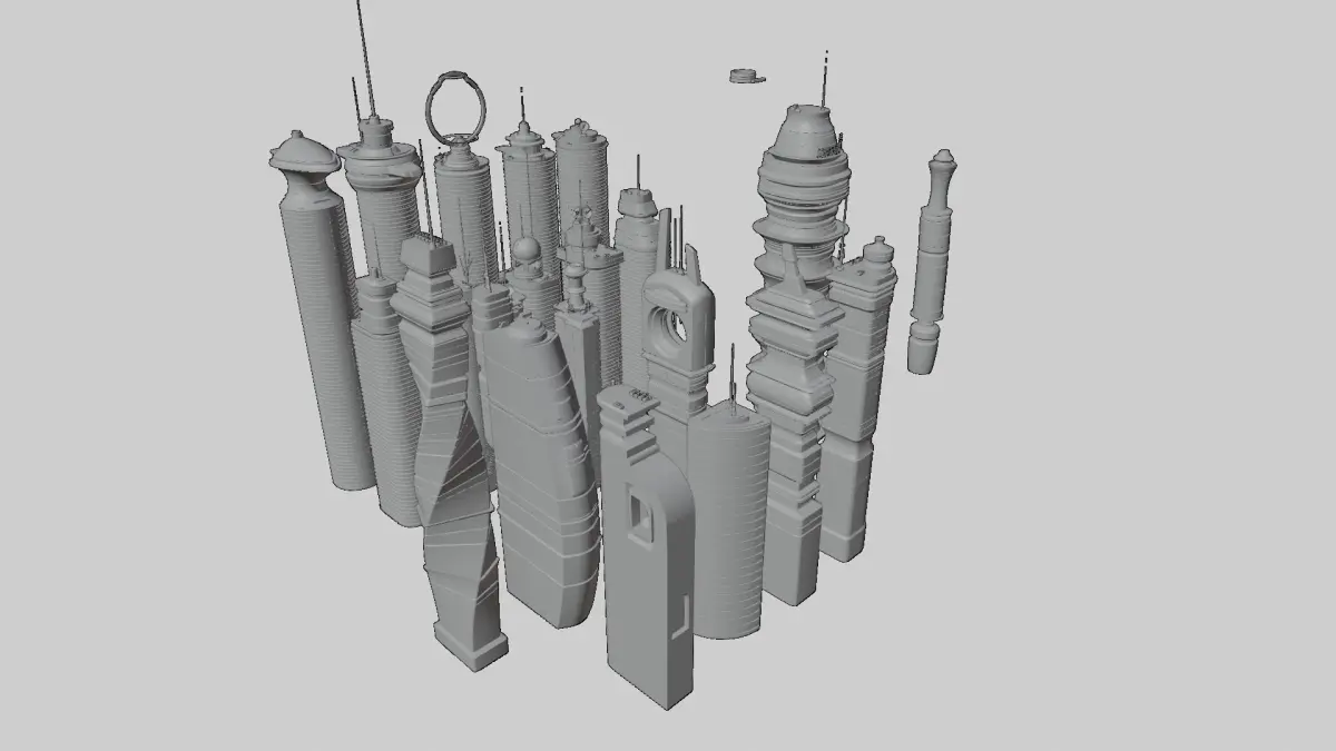 Scifi buidings packSet of 20 buildings high polymade in blender3d