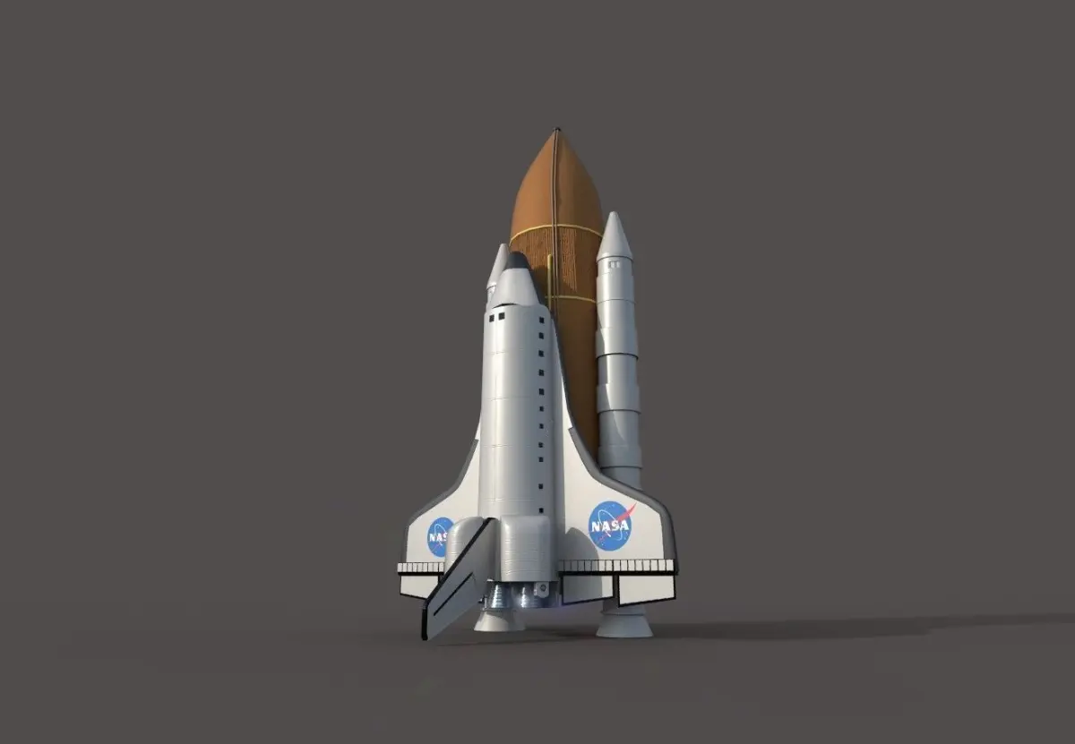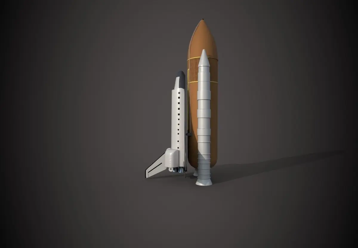 Space Shuttle space vehicle comes with booster rockets and external fuel tank. Comes with Ambient Occlusion, Diffuse, Glossiness, Height, Normal and Specular maps.This asset is ready for use as a prop in a game level or development project.