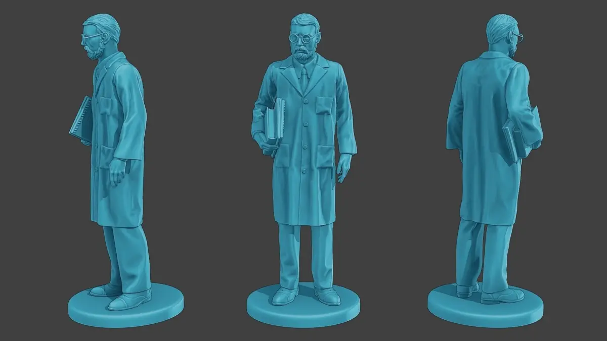 - 1 Mesh Model. Scientist Male SM1 003. Figure and base merged or figure only.