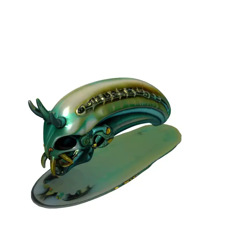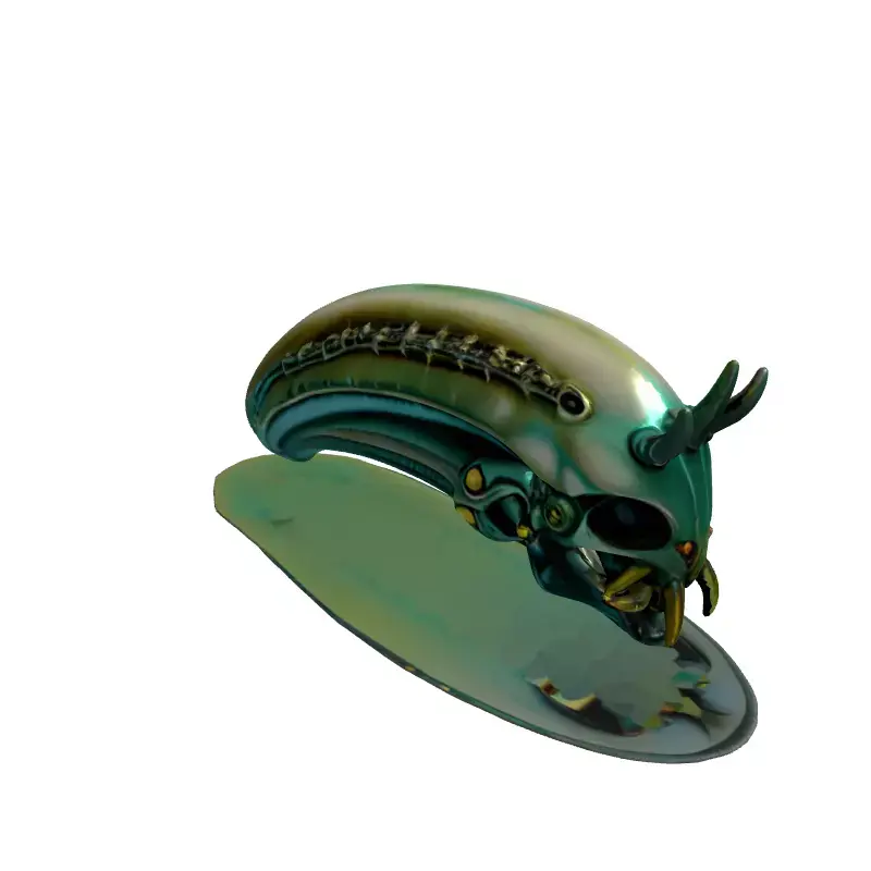 This is a meticulously crafted 3D model of a futuristic alien or insectoid creature head, seamlessly blending organic and mechanical design aesthetics. It features a striking iridescent green metallic finish, large obsidian eyes, menacing mandibles, and subtle glowing yellow accents, suggesting an advanced cybernetic or biomechanical entity. The model boasts high detail and clean, optimized topology, making it ideal for a variety of demanding applications. It is fully UV unwrapped and includes high-quality PBR textures, ensuring realistic material rendering across different environments. This asset is perfect for game developers seeking a unique antagonist or character component for sci-fi, horror, or fantasy games, ready for real-time engines and AR/VR experiences. It is also well-suited for high-resolution cinematic renderings, digital art compositions, and animated projects. The robust mesh is designed to be subdivision-ready, allowing for even greater detail if required, and supports common 3D formats such as GLB, OBJ, STL, ABC, DAE, FBX, USD, and PLY. Its intricate design and striking visual presence will elevate any project.