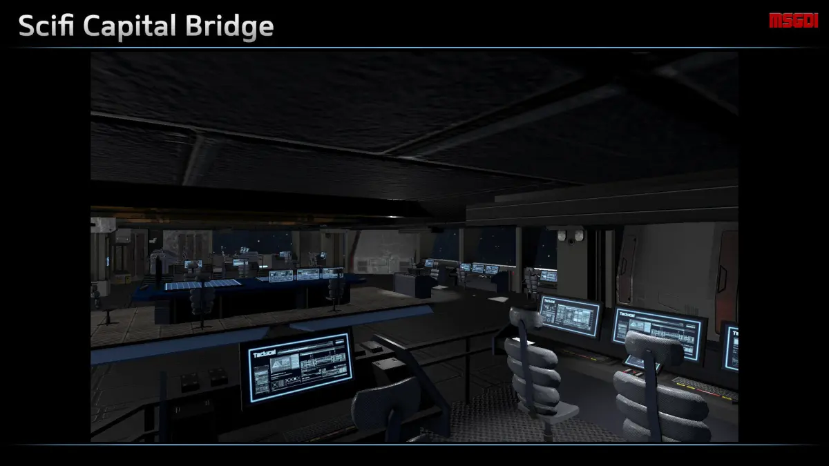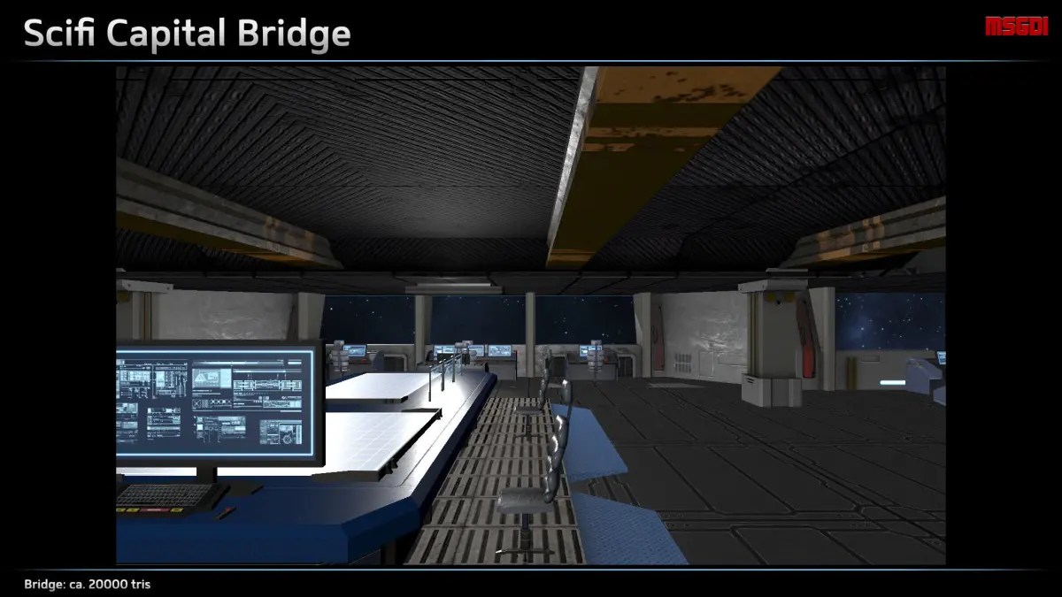 This pack contains a modular capital bridge. It can be used for commanding a spaceship in first person view or as in-game background scene.