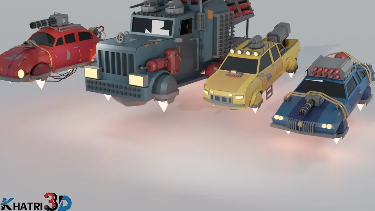 Low Poly Scifi Cars Made for Battle. Each car has its owns Weapons and perks.