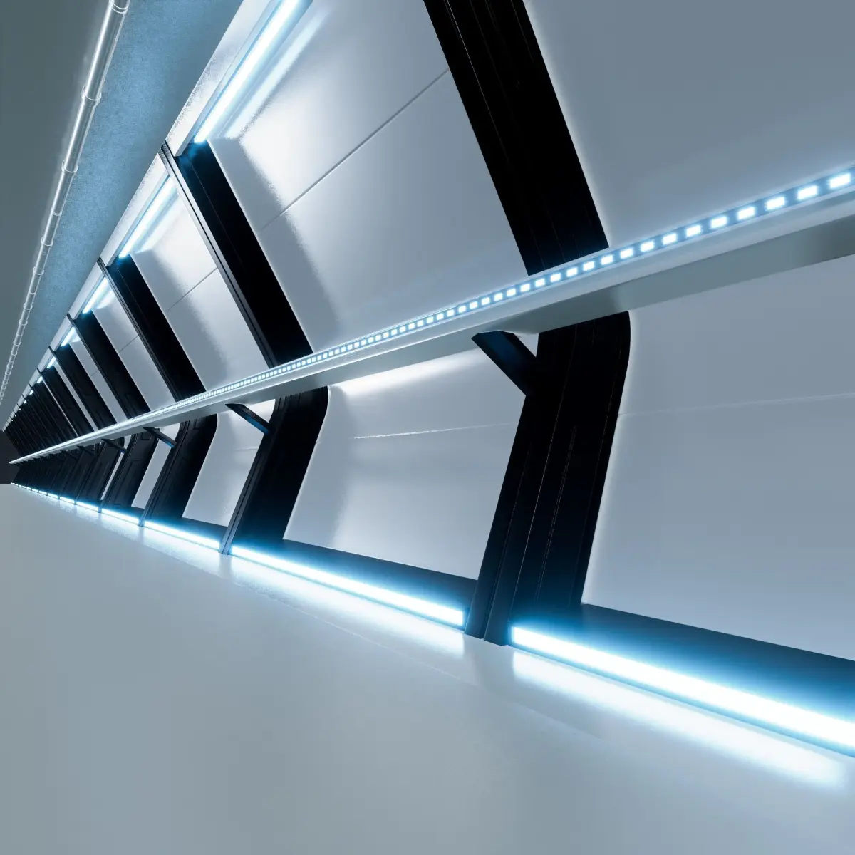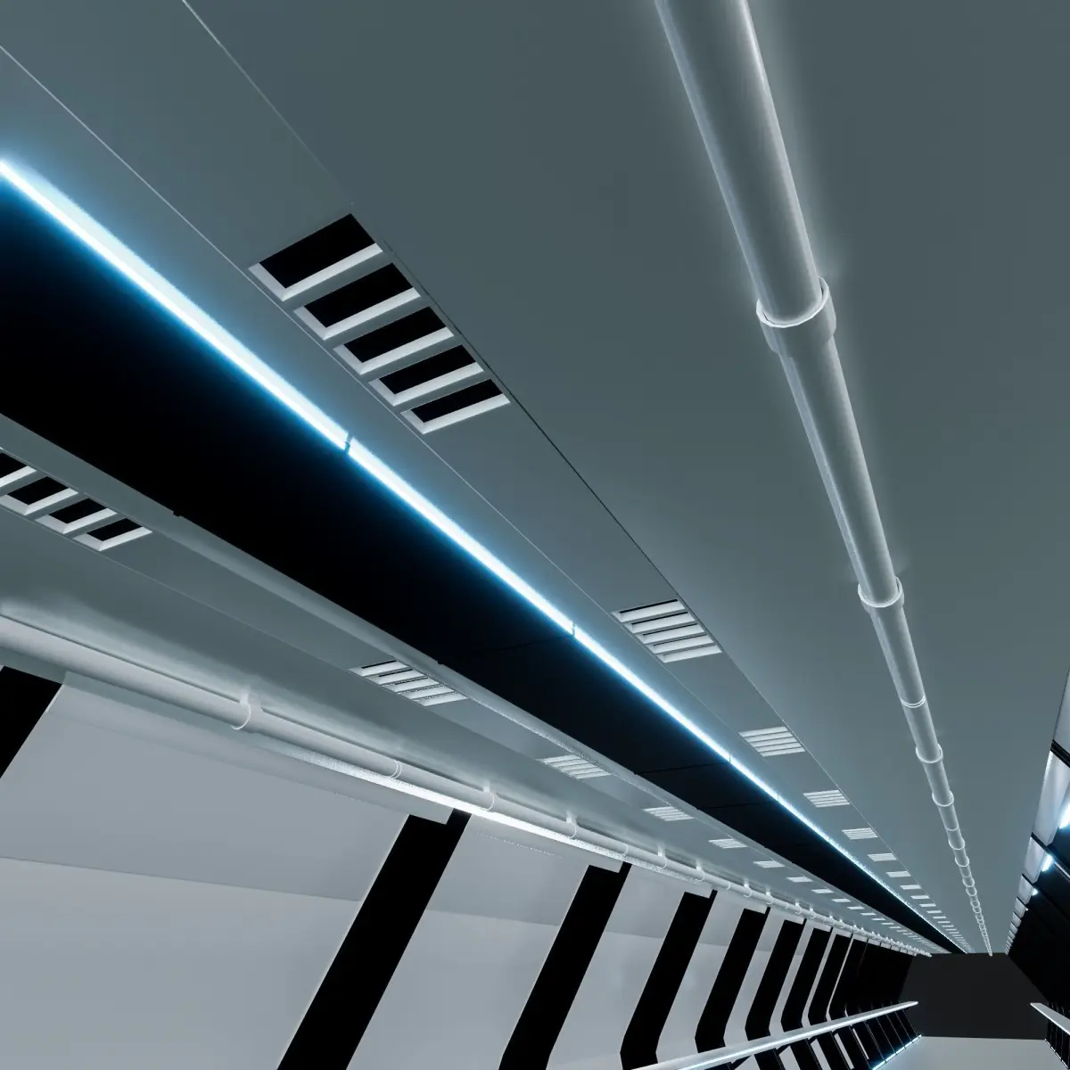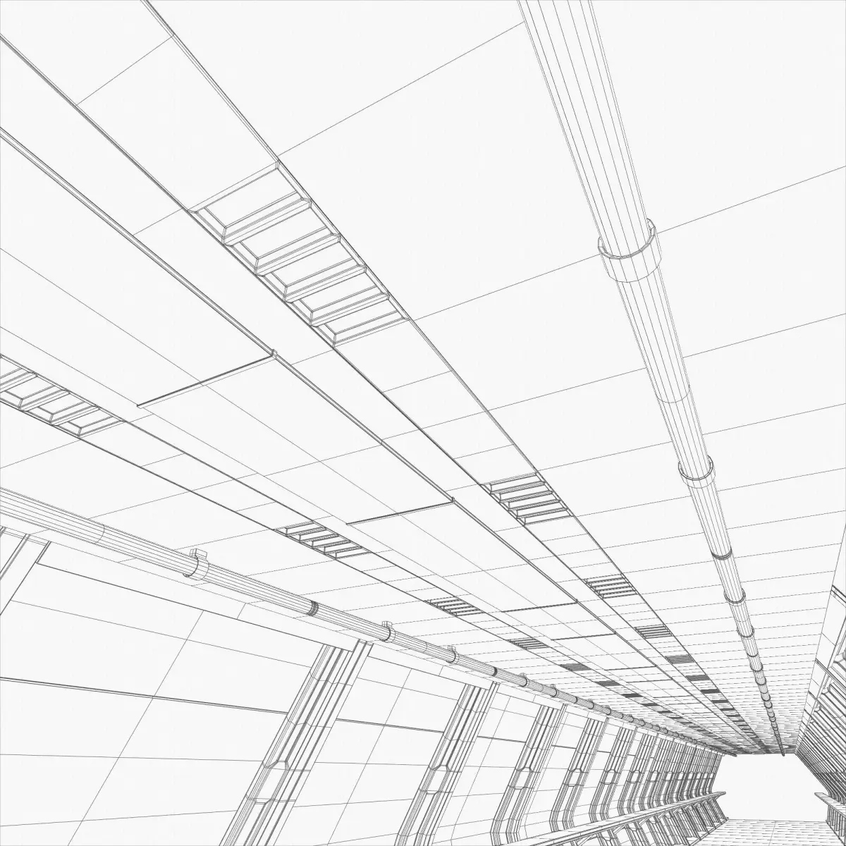 Sidenote: native blend file has modifiers enabled & to keep the filesize low and save computing power, other formats (except .blend) of model is one slice only and needs to be cloned/instanced to make corridor the desired length.