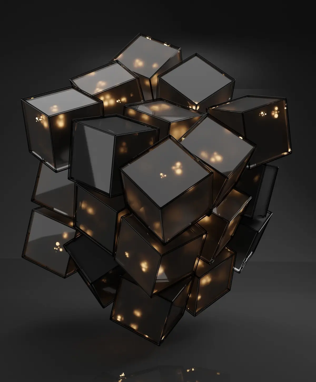 - The scene contains SciFi cubes in cube made natively in Blender 3.0