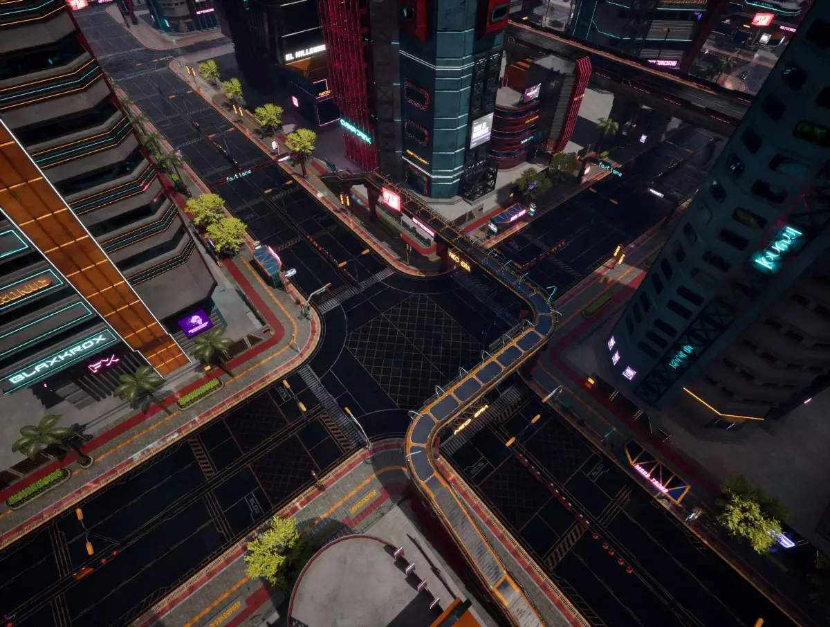 High quality hand crafted cyberpunk city scene. Everything is set up in Unreal Engine and Blender.