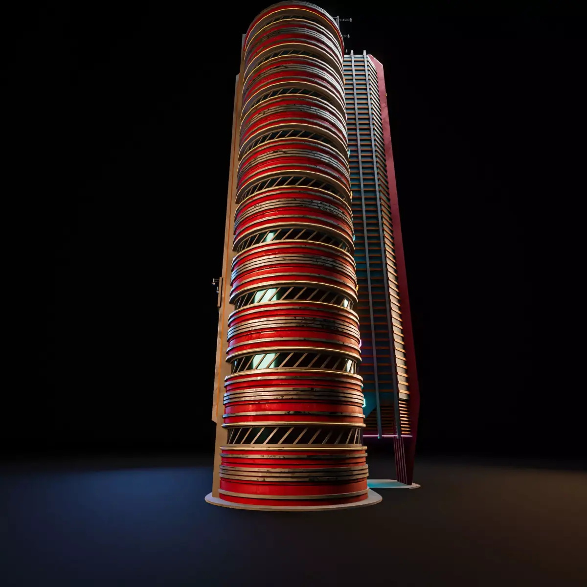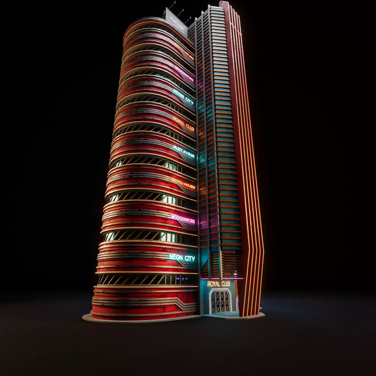 Home Catalog Commercial aircraft SCIFI CYBERPUNK FUTURISTIC NEON SKYSCRAPER 09 Low-poly 3D model