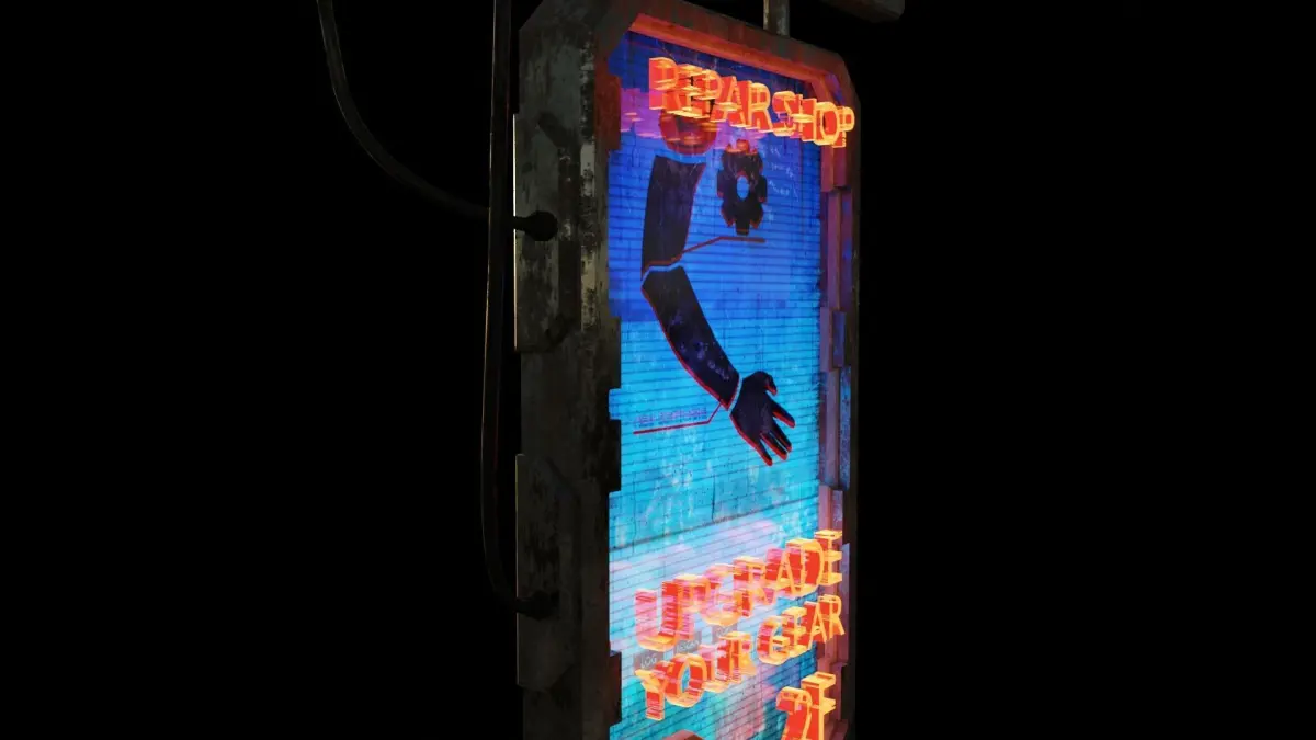 3DAsset Scifi neon sign. Part of my 3d scifi cuberpunk neon sign asset pack.Included in https://www.cgtrader.com/3d-models/exterior/cityscape/neon-scifi-cyberpunk-signs