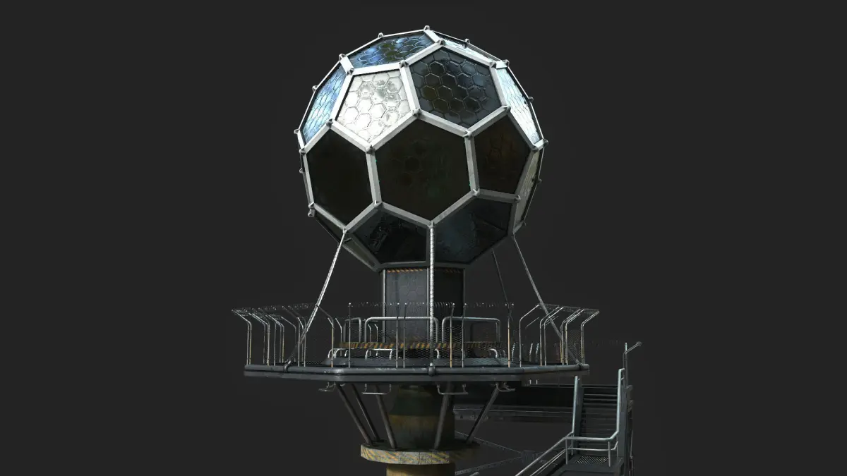 Details and Textures: The 3D model is carefully crafted, exhibiting a high level of detail and realism. The textures are diverse and rich, with lighting, shadow, and reflection effects creating a metallic and industrial appearance. The predominant color is gray, with occasional touches of blue and red highlighting the futuristic and dynamic character of the tower.