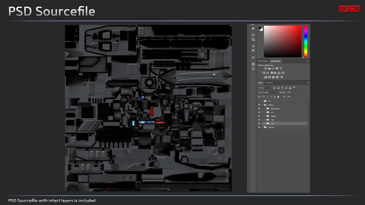 - PSD with intact layers is included