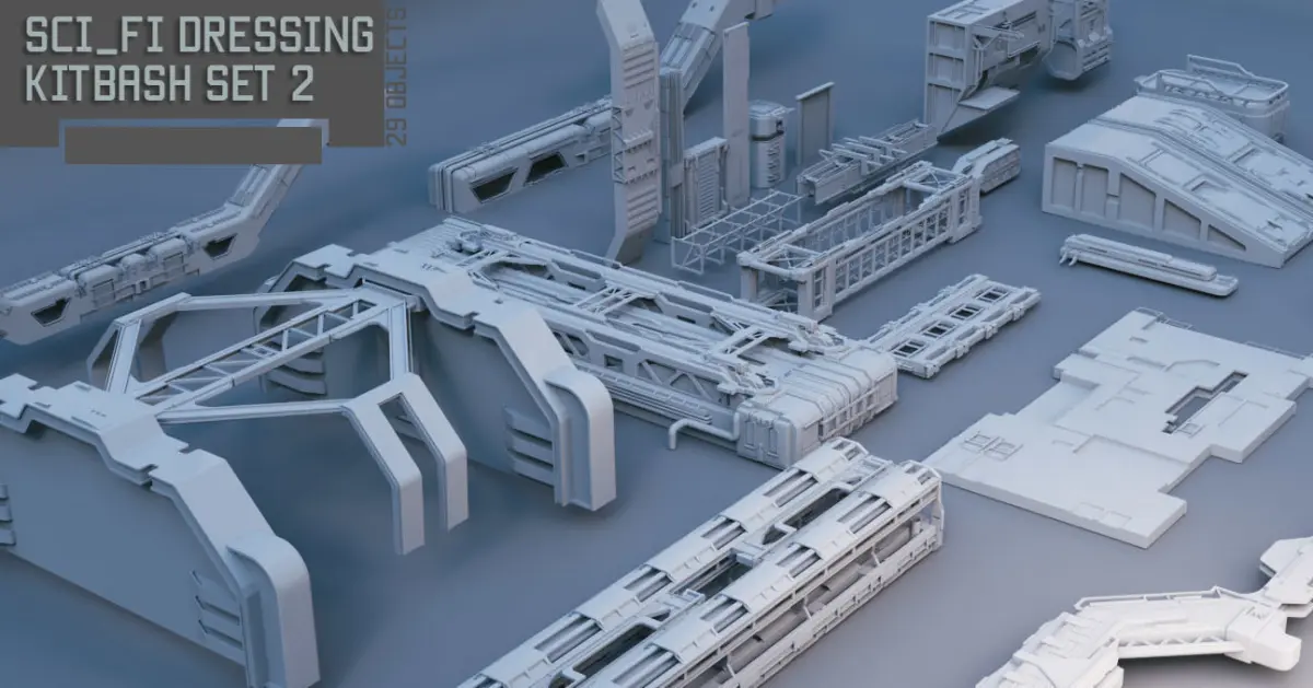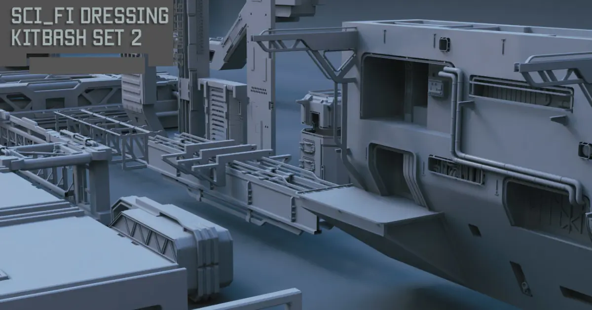 26 scifi megastructures pieces to dress your 3d scenes . This can be used to create whitebox test assets or look development.