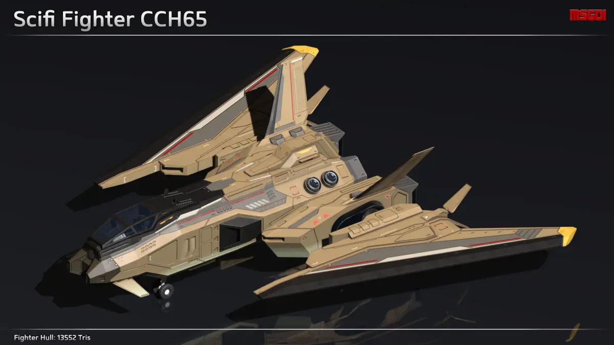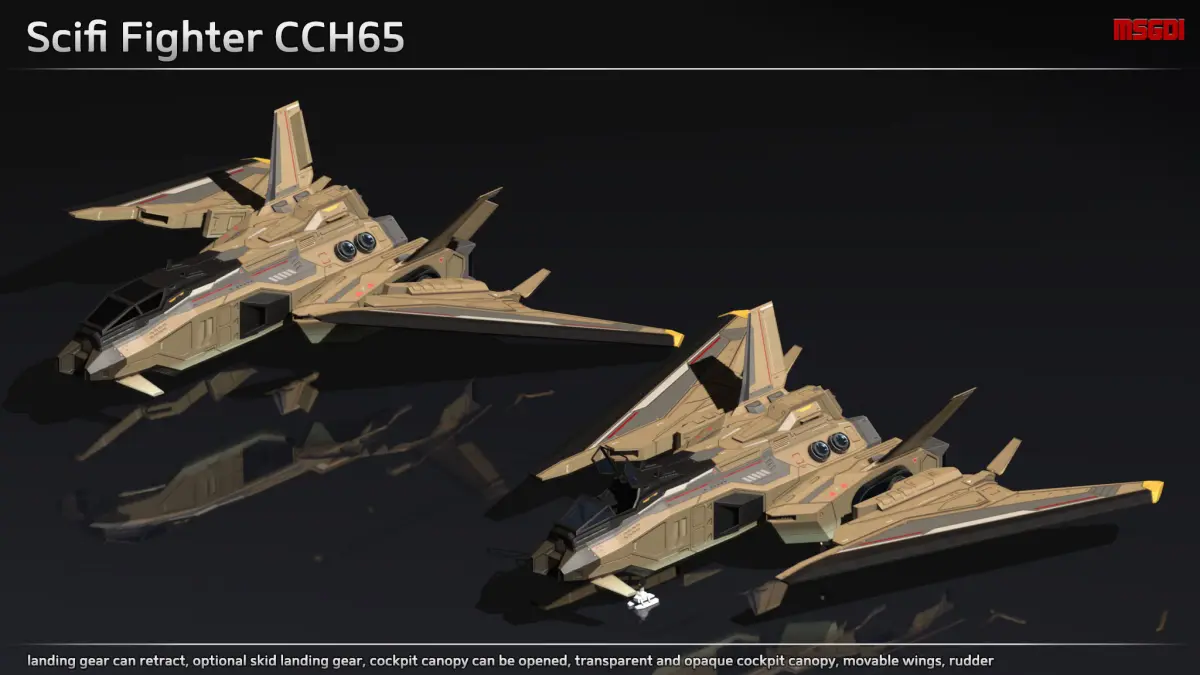 This pack contains a scifi jet fighter with modular weapons and decals. It can be used in a scifi or space themed game.