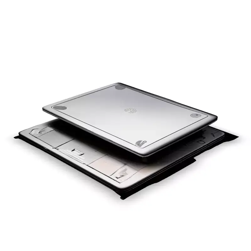 This 3D model depicts a futuristic or sci-fi floor panel hatch. Ideal for game environments, architectural visualization, or other digital art projects, this model adds a touch of technological detail to any scene. It can be used as a floor hatch, a ceiling access point, or part of a larger mechanical structure. Suitable for both real-time applications like games and AR/VR experiences, as well as high-quality static renderings. The model is available in multiple formats including FBX, OBJ, GLB, and STL for broad compatibility. It's optimized for real-time use with a clean topology, is UV unwrapped, and includes PBR textures for realistic material representation. This versatile asset is ready to be integrated into your next project, offering a unique and detailed sci-fi element.