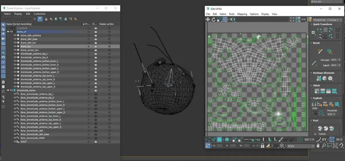 Screen is mapped as a separate model - two texture sets are used - one for drone, ane one for screen only. Both 4K.