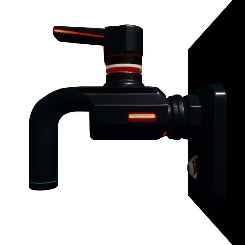 Presenting a meticulously crafted 3D model of a futuristic wall-mounted faucet, designed with a distinct sci-fi aesthetic. This sleek black tap features sharp, angular lines complemented by striking red glowing accents, suggesting advanced technology and a modern, high-tech environment. The model is perfect for enhancing a variety of digital projects, including immersive game development, cutting-edge architectural visualizations of smart homes or cyberpunk interiors, and compelling augmented reality (AR) or virtual reality (VR) experiences. It is also highly suitable for intricate digital art compositions and cinematic renders where a contemporary, sophisticated look is desired. The asset boasts clean, optimized topology, making it efficient for real-time applications while maintaining excellent visual fidelity for static renderings. It is fully UV unwrapped for easy texture application and is designed with PBR (Physically Based Rendering) materials in mind to ensure realistic surface properties and lighting interaction. Compatible with major 3D software and engines, the model is available in various industry-standard formats such as GLB, OBJ, FBX, USD, DAE, ABC, and PLY, ensuring broad usability across different workflows. This model will undoubtedly add a touch of futuristic elegance and functionality to any scene, making it a valuable asset for creators seeking to populate their virtual worlds with advanced designs.