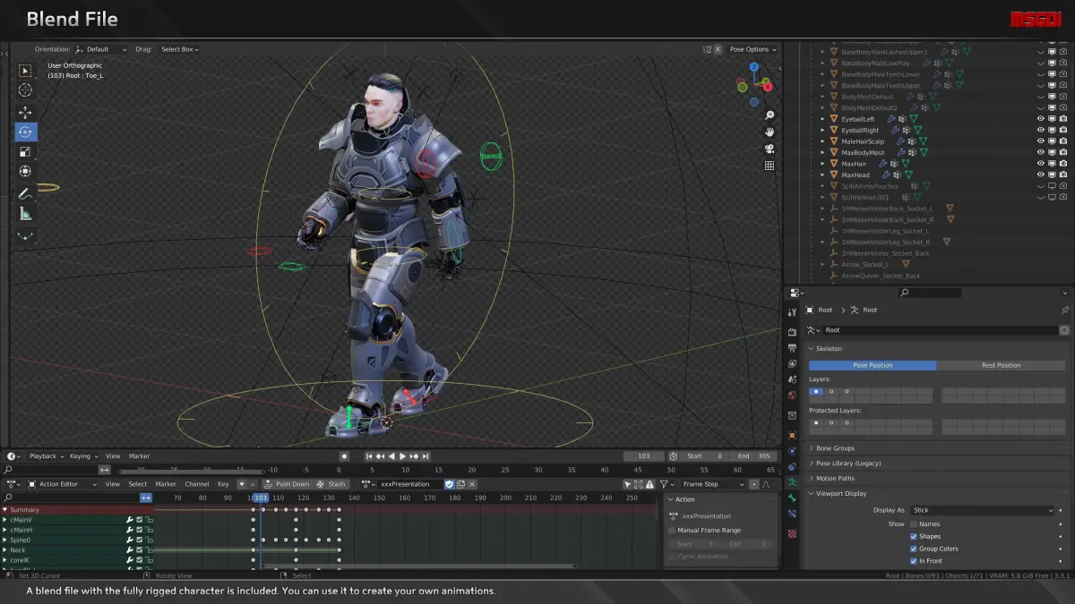 - Please note: The Blend file does not contain animations, only the rigged character is included