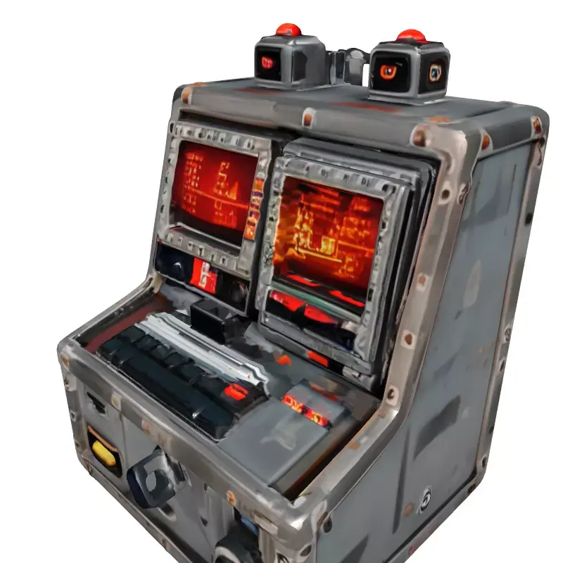 This highly detailed 3D model represents a rugged, retro-futuristic control panel or terminal, perfect for injecting a sense of advanced yet weathered technology into your projects. Encased in a distressed metallic housing, it features two vibrant red-lit display screens showcasing alphanumeric data and intricate graphical interfaces, a compact mini-keyboard, numerous interactive buttons, rotary dials, and various input/output ports. The model captures an industrial, hard sci-fi aesthetic, ideal for environments ranging from post-apocalyptic landscapes to cyberpunk cities or vintage space stations. It is meticulously crafted with clean topology and is fully UV unwrapped, ensuring ease of texture application and manipulation. Optimized for real-time applications such as game development (as a prop, environmental dressing, or interactive asset), AR/VR experiences, and high-quality static renderings for architectural visualization or digital art. The asset includes PBR textures to achieve its authentic, worn metal look and glowing screen effects. It is suitable for film and animation productions seeking a distinctive technological prop. Supported file formats include GLB, OBJ, STL, FBX, USD, DAE, ABC, and PLY, making it versatile for various 3D software and engines.