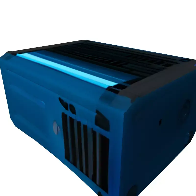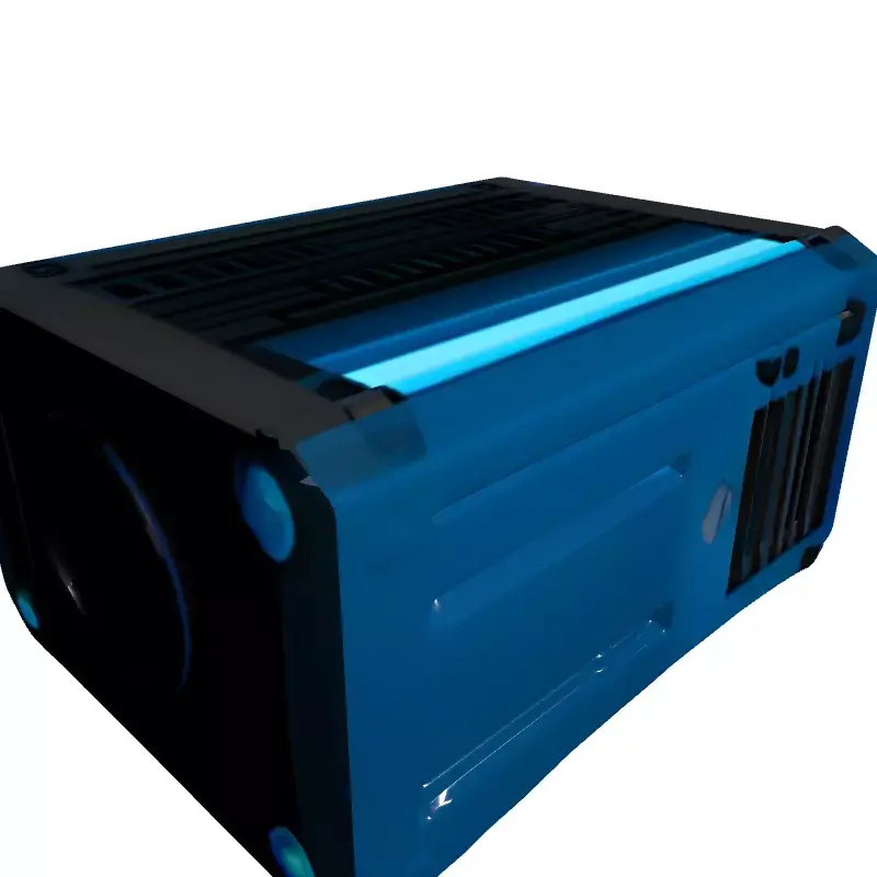 This highly detailed 3D model represents a rugged, industrial-style digital projector or compact media playback device, infused with distinctive sci-fi aesthetics. Its robust design features prominent ventilation grilles, exposed fasteners, and striking blue illuminated accents, making it an ideal asset for a wide array of digital projects. The model is meticulously crafted with clean topology and is fully UV unwrapped, ensuring seamless texture application and optimal performance. It comes complete with a set of high-quality PBR (Physically Based Rendering) textures, capturing realistic material properties like metallic sheen and subtle surface wear, suitable for both close-up renders and integration into larger scenes. Perfect for game development, this asset can serve as an immersive environmental prop in first-person shooters, role-playing games, or futuristic simulation titles. Its unique design also makes it a valuable addition to architectural visualization projects requiring a modern, industrial, or sci-fi touch. Beyond interactive applications, it excels as a prop for film, animation, and digital art compositions, enhancing the visual narrative of any sci-fi-themed setting. The model is optimized for real-time applications such as AR/VR experiences, offering a balance of detail and efficiency. It supports a comprehensive range of industry-standard file formats, including GLB, FBX, OBJ, USD, DAE, and ABC, facilitating easy integration into any 3D workflow. This versatile projector model is production-ready, designed to elevate the realism and aesthetic appeal of your virtual environments.