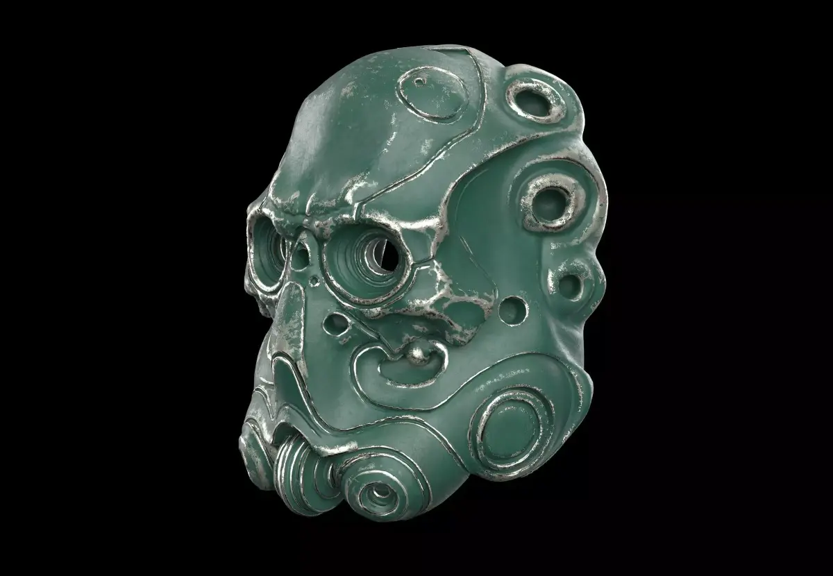 scifi mask, modelled in Blender 4 Available in blend, OBJ, FBX, and STL format. Blend-file is ready to render in cycles. UVs are unwrapped and non-overlapping.