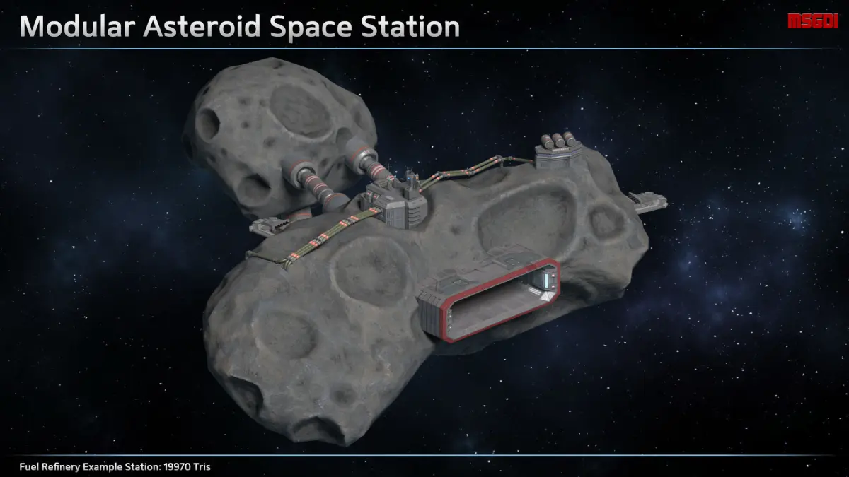 - Final tris count depends on how many parts are used to build a space station