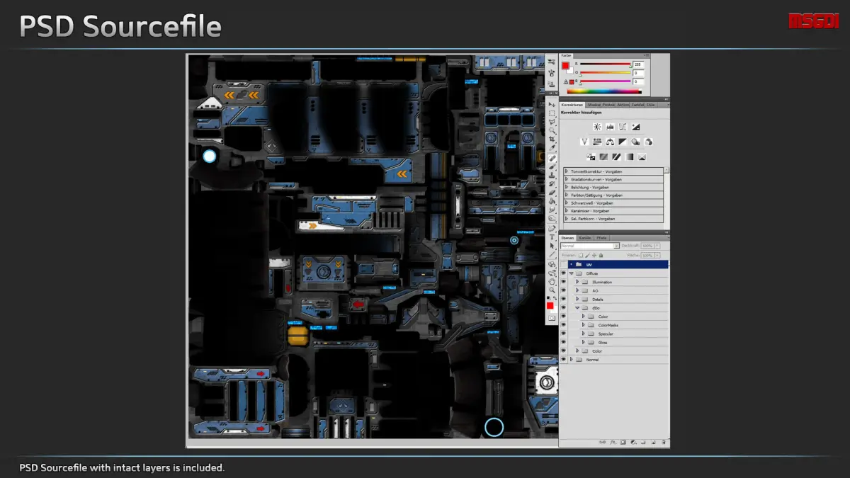 - PSD with intact layers is included