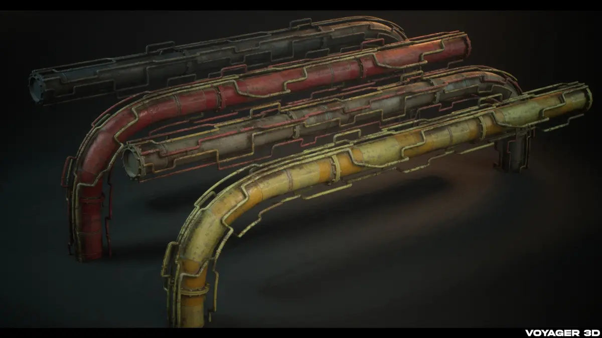 (This pack is not the same pack as the 'SciFi Pipes Pack 01' on the Epic marketplace, as it does not come with a spline 'blueprint'. You will have to bend the meshes with the tool available in your software of choice.)