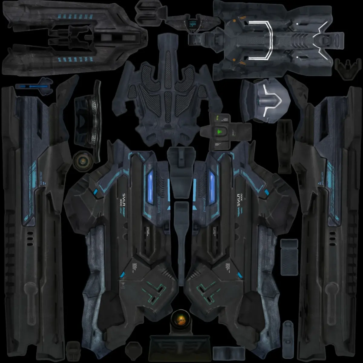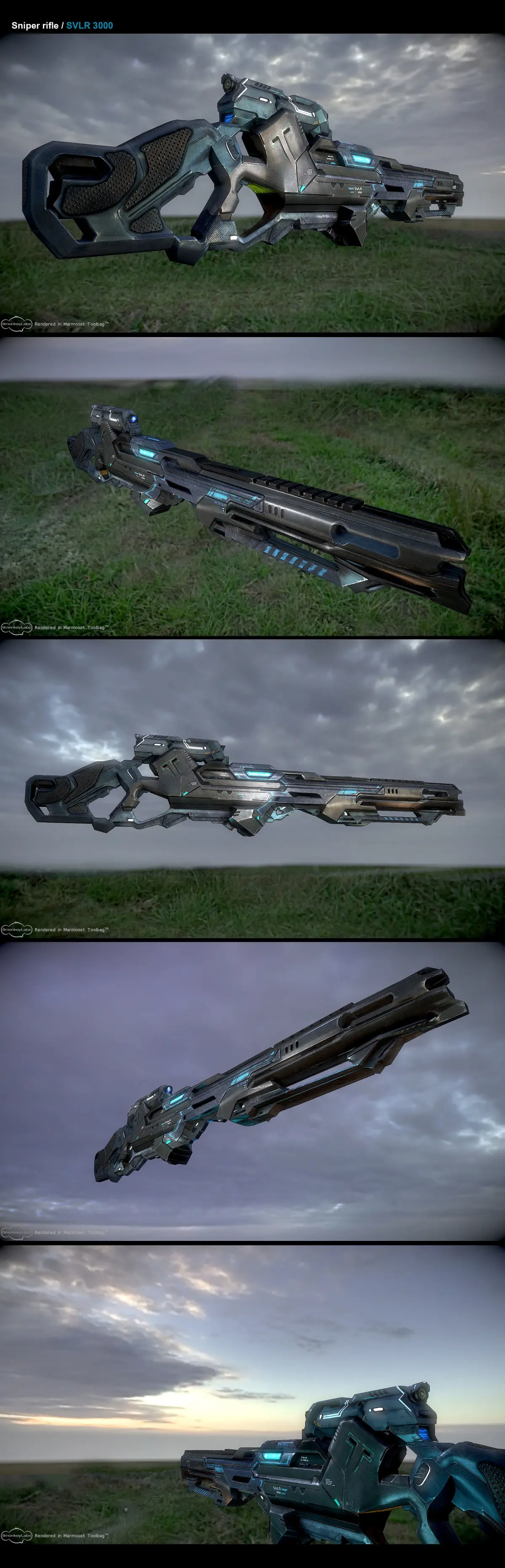 Game ready Scifi Rifle. 2247 Polygons UV and textures Included. (Color map, Specular map, Normal map, Illumination map).