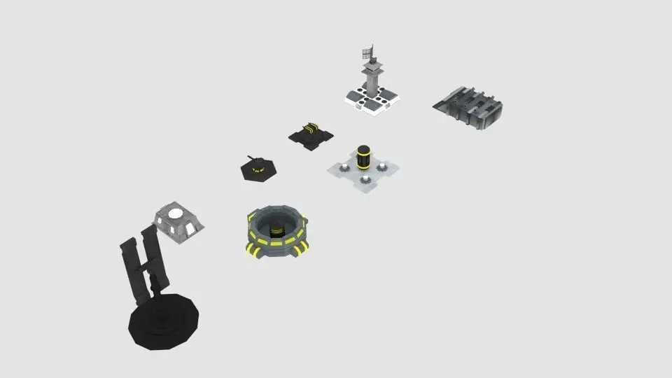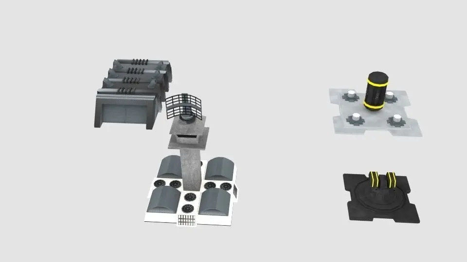-Antenna-Barrack-Canon Turret-Turret-Energy-Generator-Radar-Garage