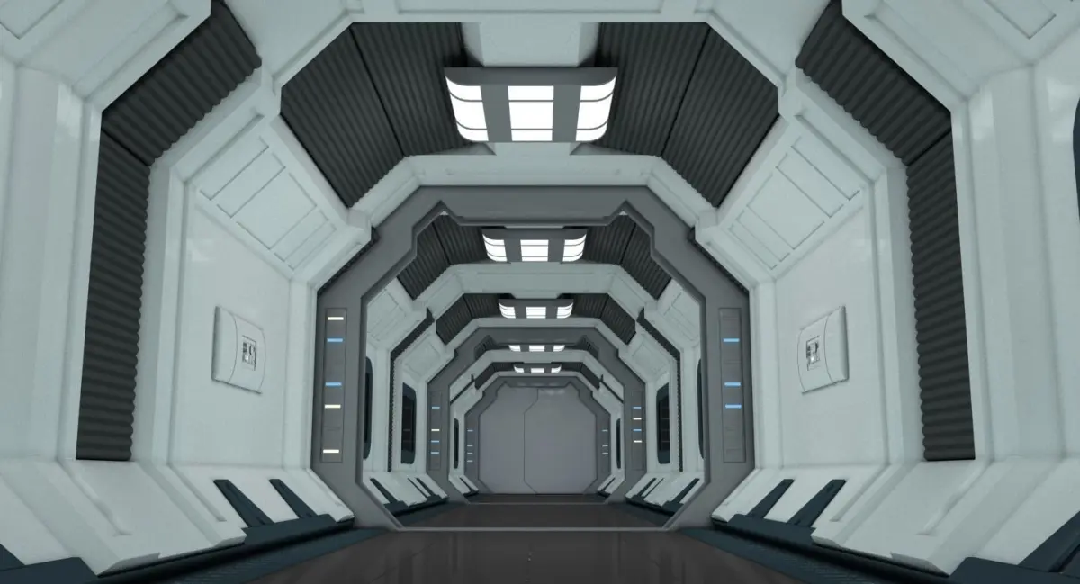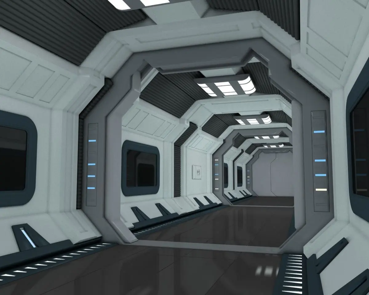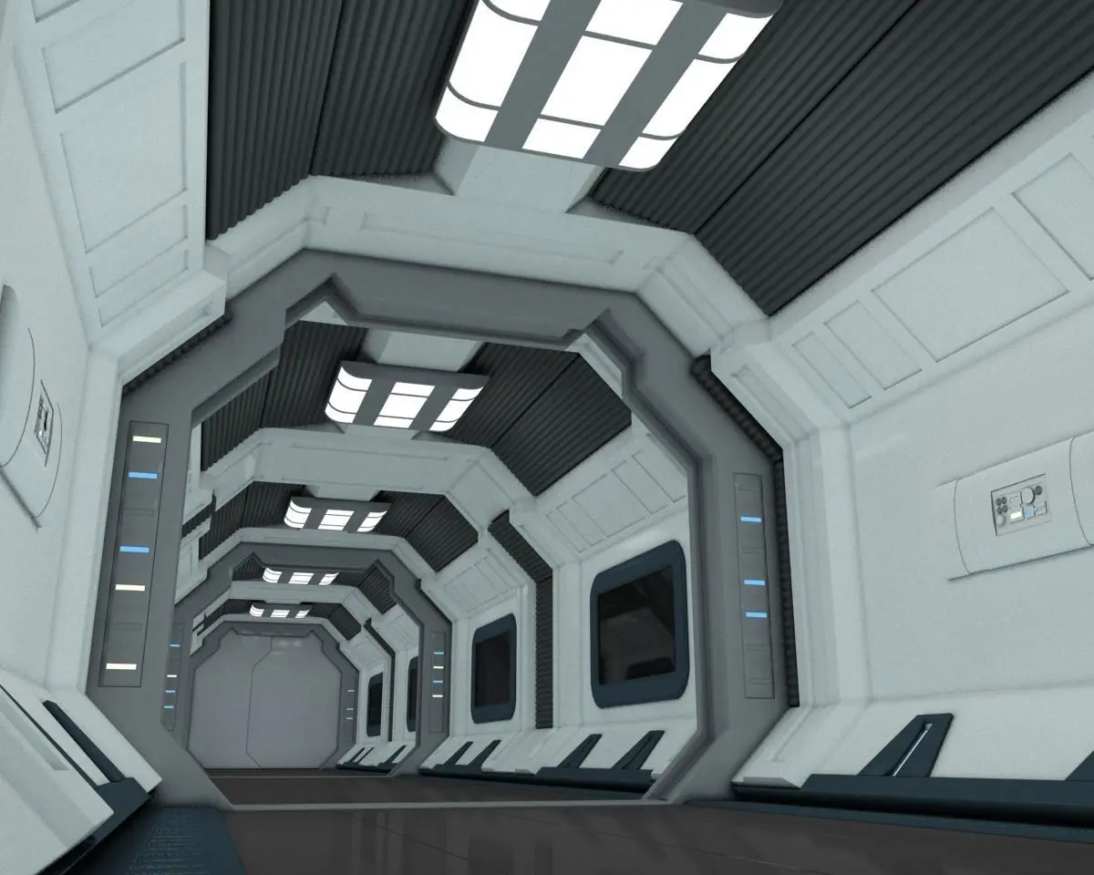 HIGHLY DETAILED 3D SCENE OF A SPACESHIP CORRIDOR