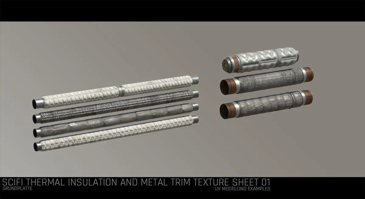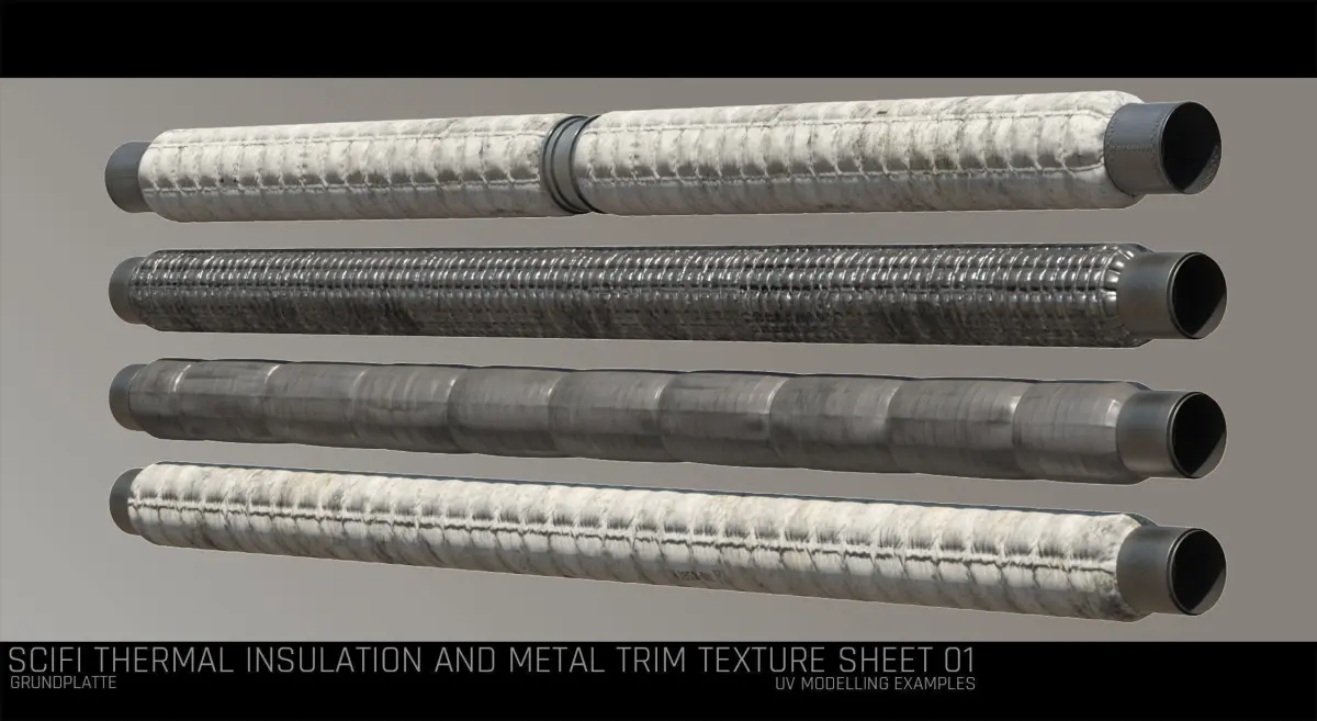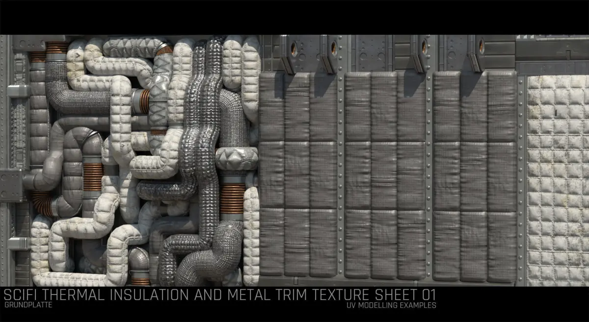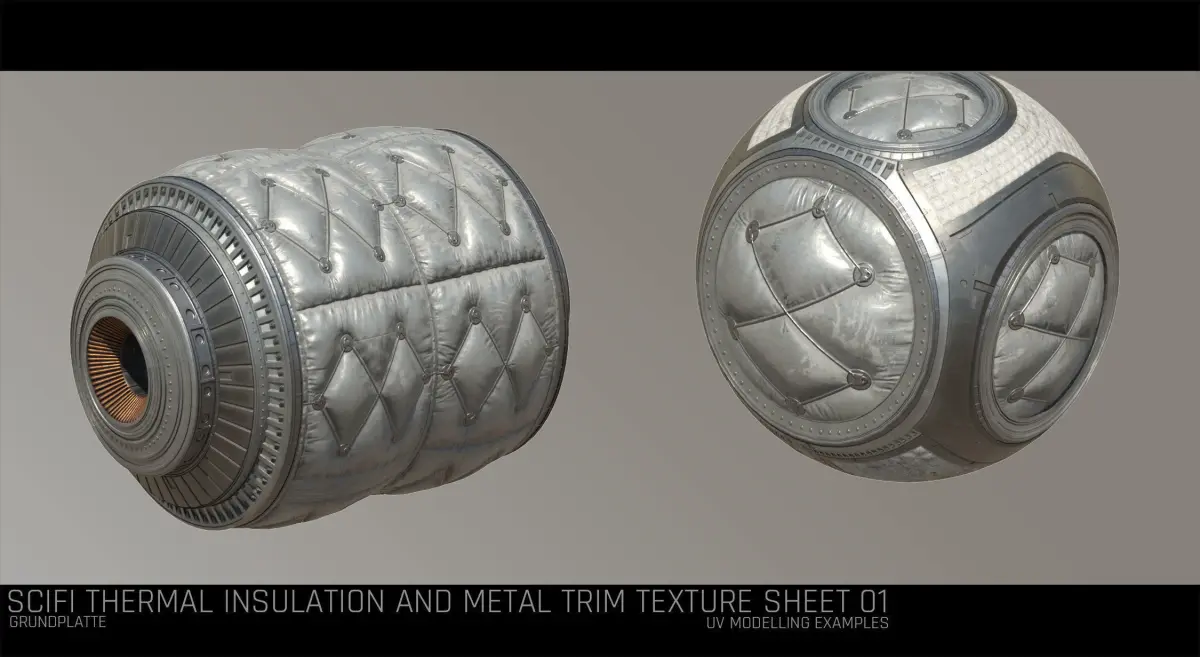 Scifi Thermal and Metal Texture with uv/modelling examples on how to use the textures and what can be done with it. Also provided extra texture resources for Substance Painter import.