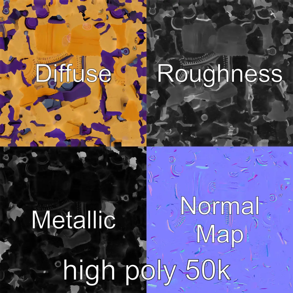 The model's textures are PBR, Diffuse, NormalMap, and reflection/roughness/metallic, which are suitable for any modern rendering engine. All models accurately unwrapped and have no overlapping UVs.