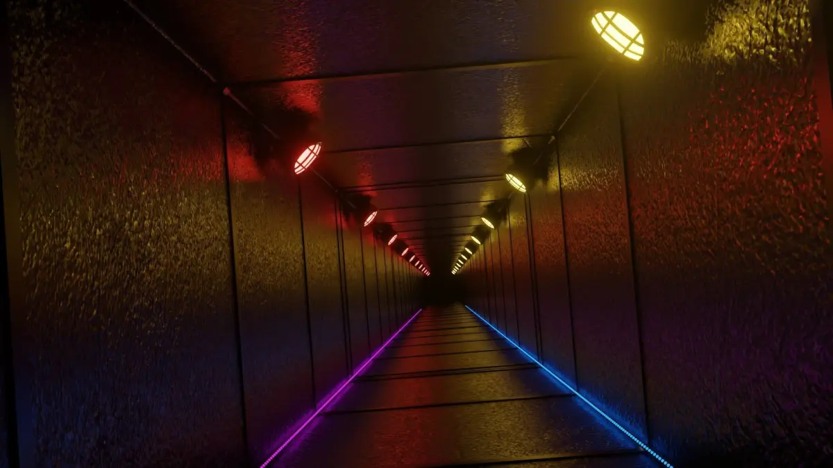 Tunnel flight animation. light appears at the end. watch my flight animation videos.