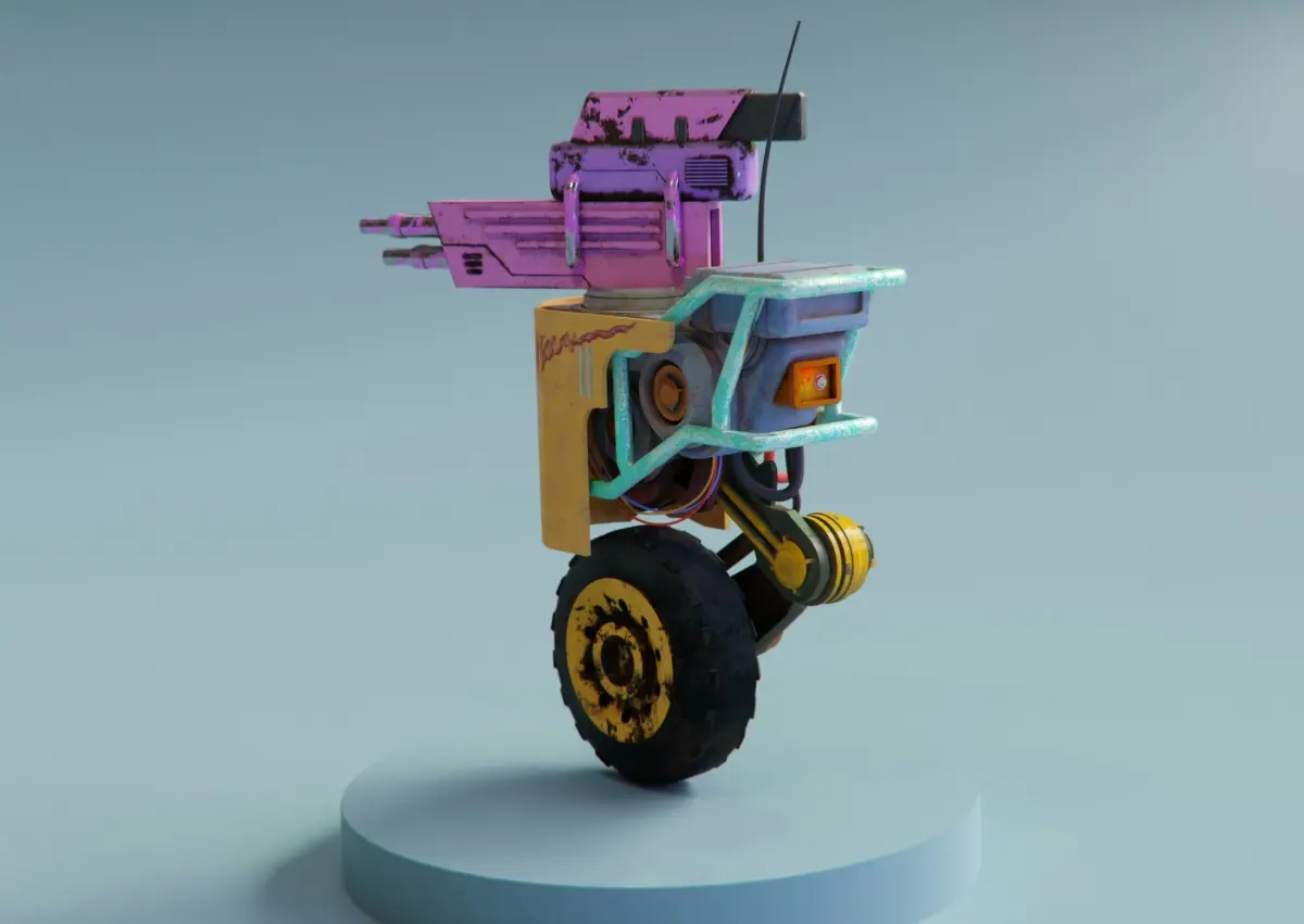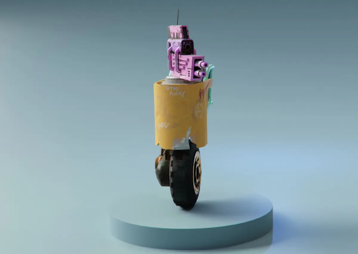 Robot turret with gun nor you can replace it any object in mount.this 3d model for game asset or something else related with cyberpunk themealso this package include texture. native in Blender (.blend)