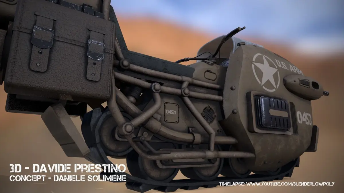 Sci-fi U.S. Army 04521 BikeEng - This model is inspired by a concept by Daniele Solimene, the model is made in Blender and textured with Substance Painter.Ita - Questo modello e' ispirato da un concept di Daniele Solimene, il modello e' realizzato in Blender e texturizzato con Substance Painter.