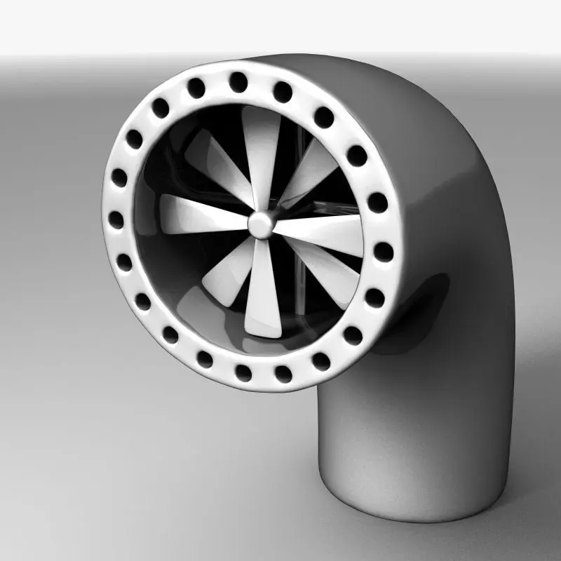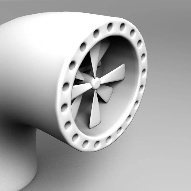 High quality model of futuristic scifi-style vent pipe and propeller.