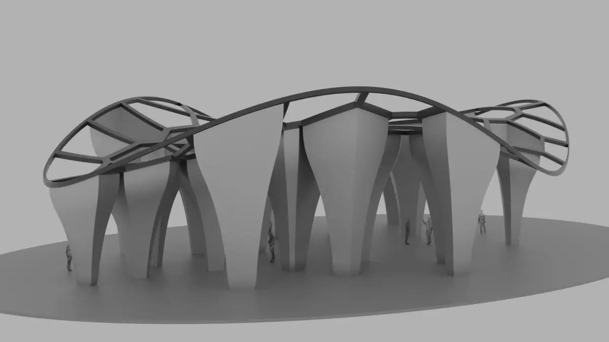 A SciFi Voronoi Urban Pavilion, with a set of smooth columns and a wavy ceiling Structure with Parametric form voronoi pattern, the model was created using computational parametric tools to achieve the most accurate geometry with clean details, it could be used for architectural render purposes outdoors, and also for Landscaping, urban landmarks and a usable pedestrians open air structure that could host various and multipurpose activities.