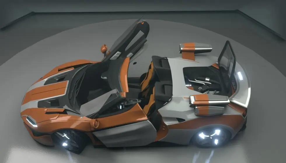scifi car model is complete;-interior-exterior-canon blaster weapon