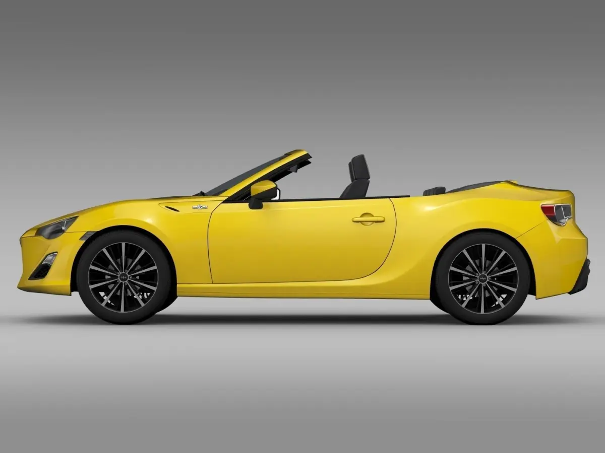 Scion FR S Cabrio 2015The car is digitally imagined. It is unique and it hasn't got any analogues in real life. It has been made at direction of the author and created for fan . So if you like it. Enjoy!!!The model is created in real units of measurment. All car parts are correctly named. Model is created in Autodesc Maya 2012, visualization (rendering) - Mental Ray 3.01. It is easy to change or modify the model.Autodesc Maya mb file contains all the Mental Ray materials and render setup.Other formats are without Mental Ray materials. Model is high poly and high quality. It is suitable for extream high quality render.