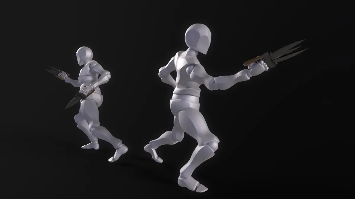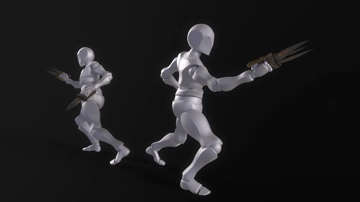 The outer blade on the model can be opened or closed using shape keys included in all files except .obj, which instead includes a separate opened and closed version.Two texture sets are included: One with a worn painted design on the metal, and one without