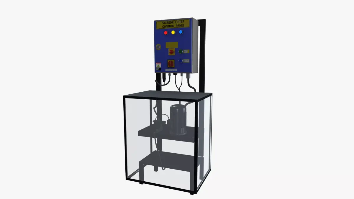 - The scissor lifter control panel is designed with user-friendliness in mind, featuring clearly labeled buttons and indicators that simulate real-life operation.