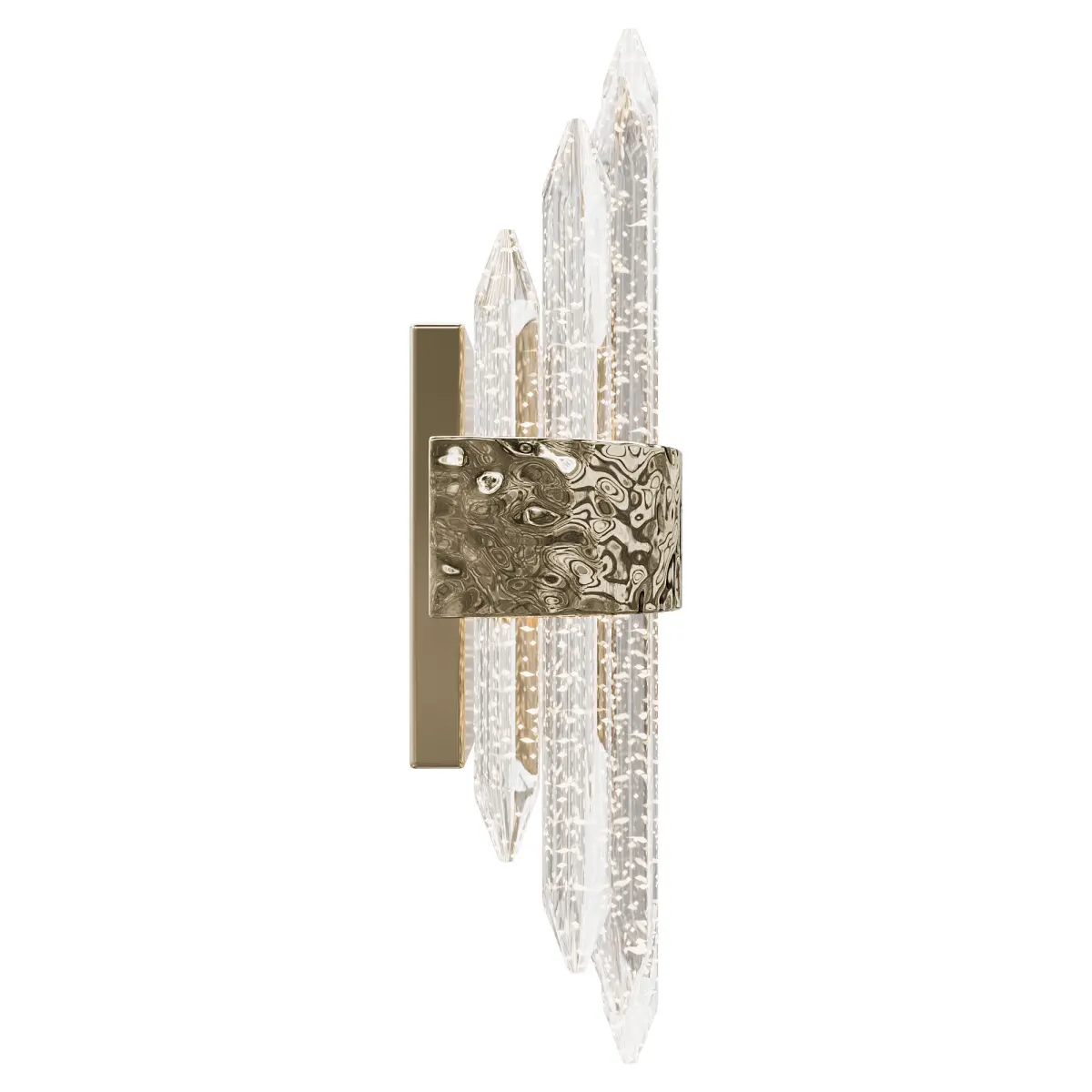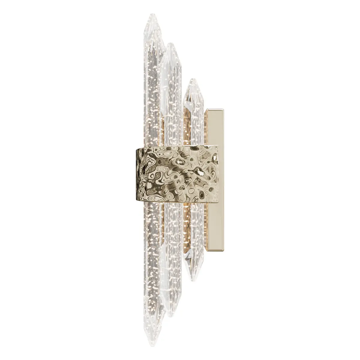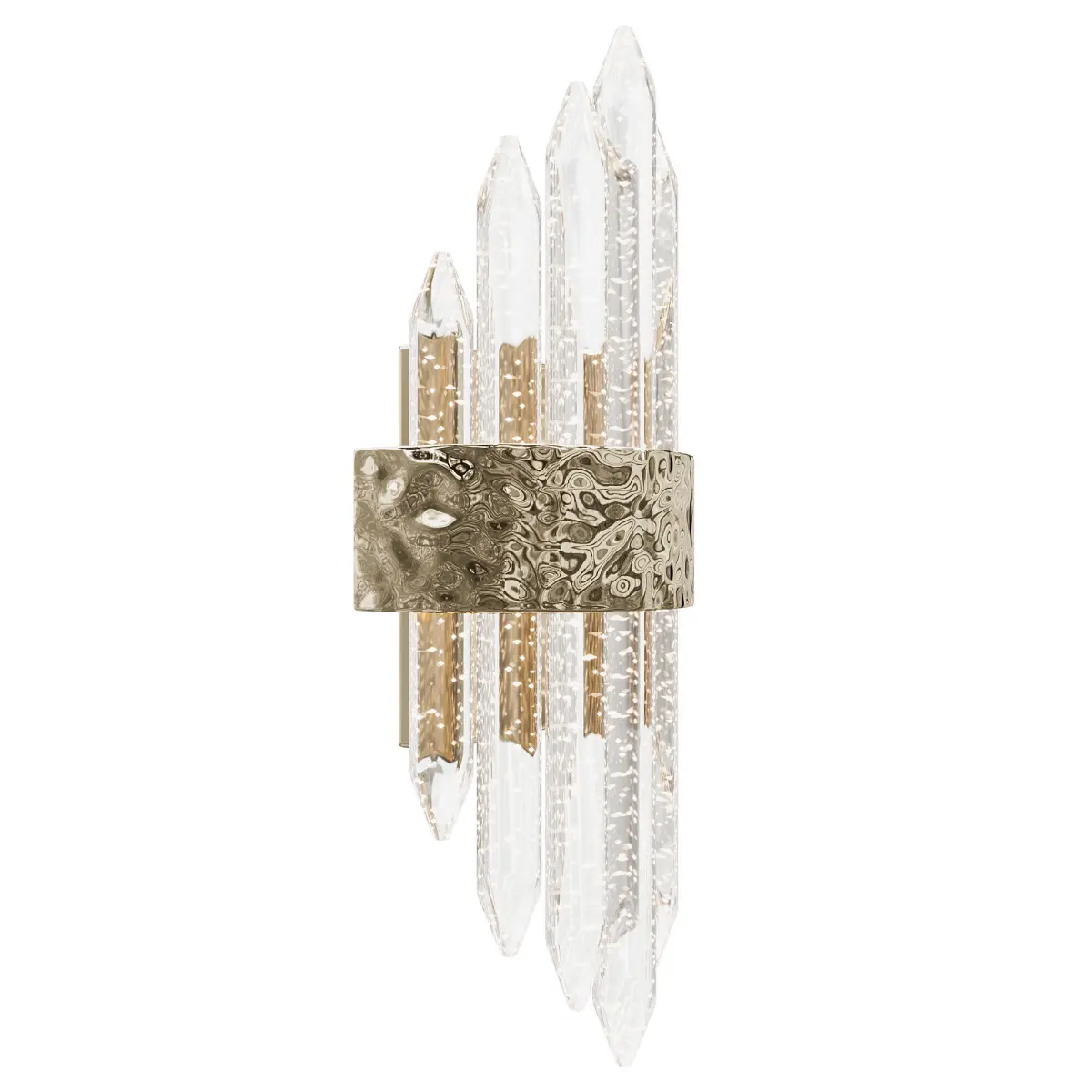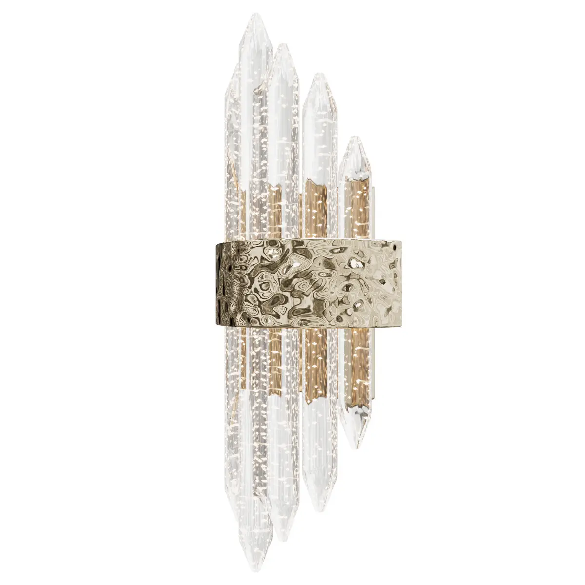 The model was created in version 2022 and saved in an earlier version 2019.The OBJ format is also present.There are no third-party plugins, all elements are named by their names.For Corona render, it is recommended to install version 1.5 or higher, since the glossiness of materials is configured taking into account PBR,(SCENE IN MILLIMETERS)Height: 500 mm. Width: 130 mm. Length: 180 mm.A stylish sconce with a glass shade in the form of oblong crystals embodies the simple elegance of glass and the luxury of gilded metal. A beautiful sconce in the interior looks incredibly luxurious - soft diffused light and original design unobtrusively decorate the space. You can install a sconce above the bed in the bedroom, near mirrors and paintings in the hallway or corridor. There is a place for this designer lamp everywhere. A spectacular sconce in the living room will create an intimate atmosphere when the chandelier is turned off and will highlight any decor placed on the wall. The model is also presented in chrome.