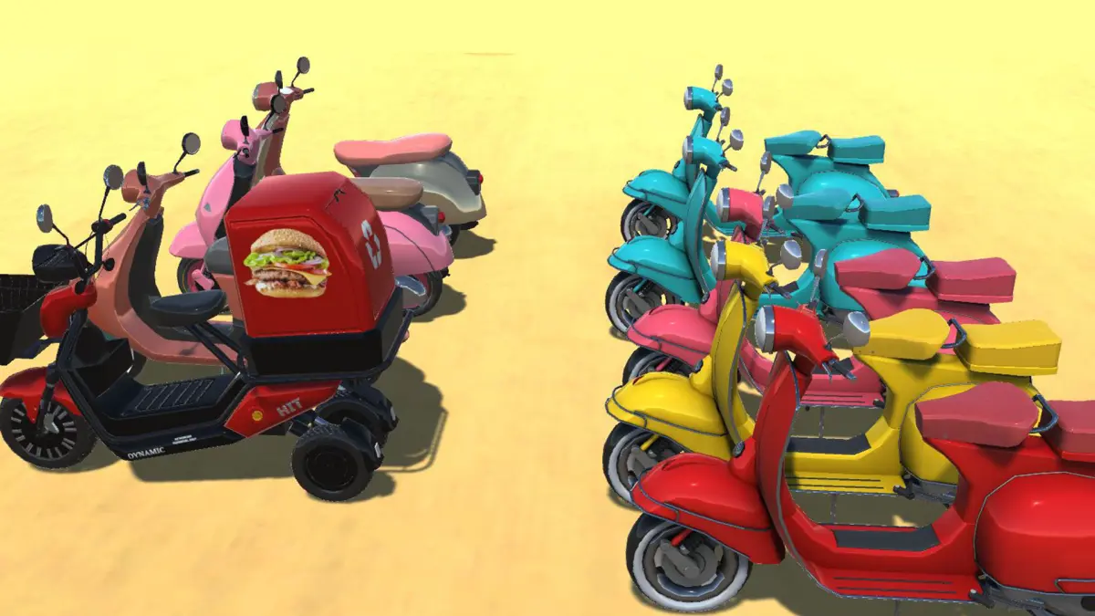 SUMMARY................................This package comes with 5 scooters, Rigged and well detailed textured assets