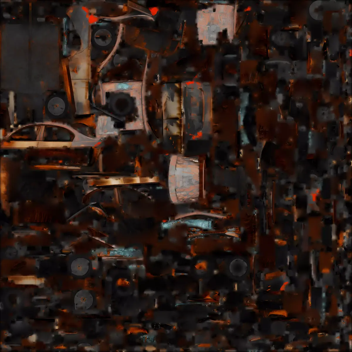 TagsCar Sedan Scorched BurnedOut Rusted Wreckage PostApocalyptic Urban Decay Prop GameAsset Horror Survival Shattered Engine Realistic Environment Transport Damage Barricade