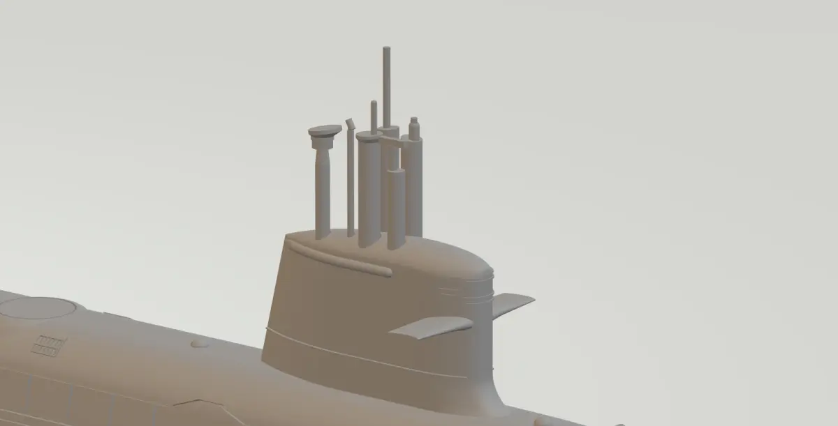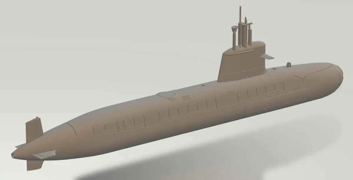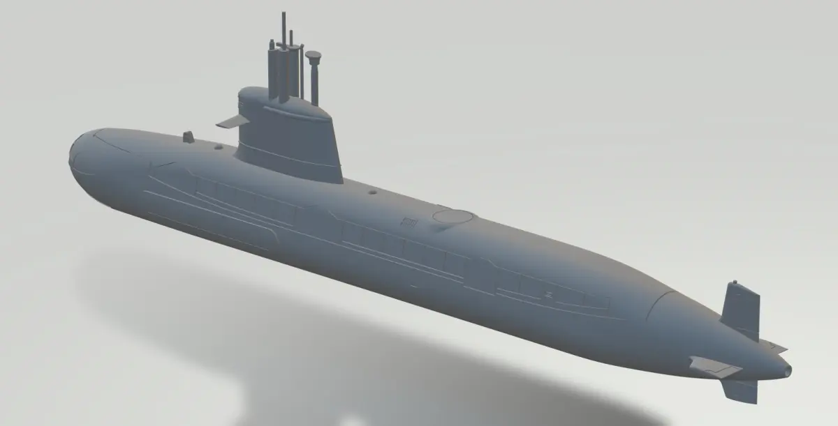 Here, 1/200 model of Kalvari-class is provided. The Kalvari-class is an India specific variant of the Scorpene-class submarine. Four files are provided: