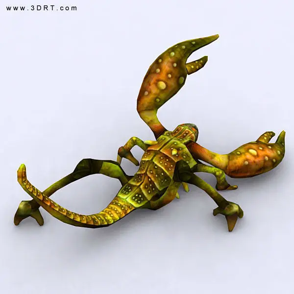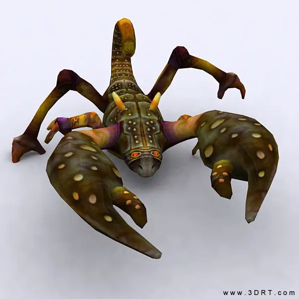 Fully rigged and animated fantasy scorpid monster model. 5 different styles textures (1024x1024 .jpg) Model is game-ready and optimized for real-time engines. Triangles count: High LOD 1500, Low LOD 674