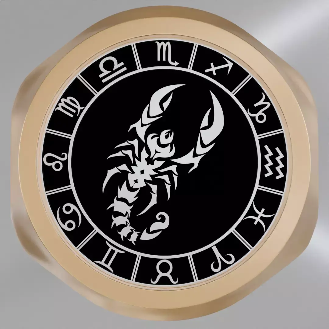 - Central insert with the Scorpio zodiac sign, represented as a detailed scorpion with raised tail.