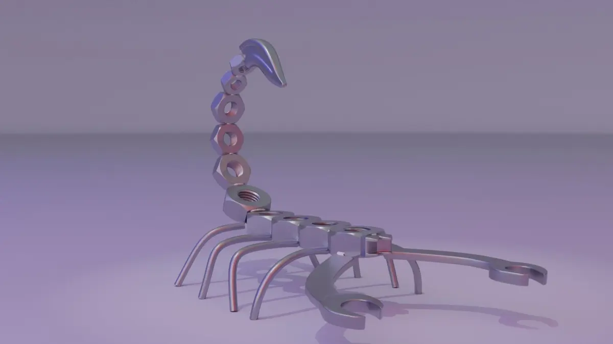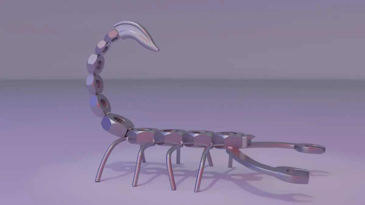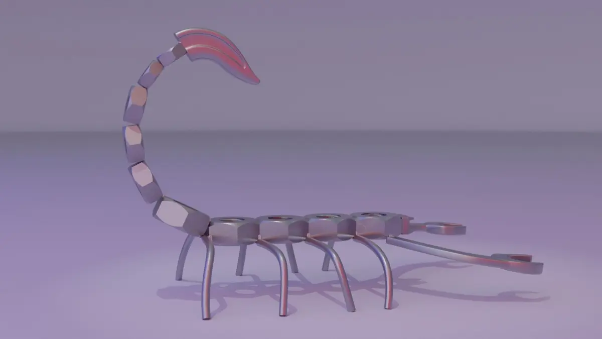 This is 3D model of the stylized metal art scorpion.