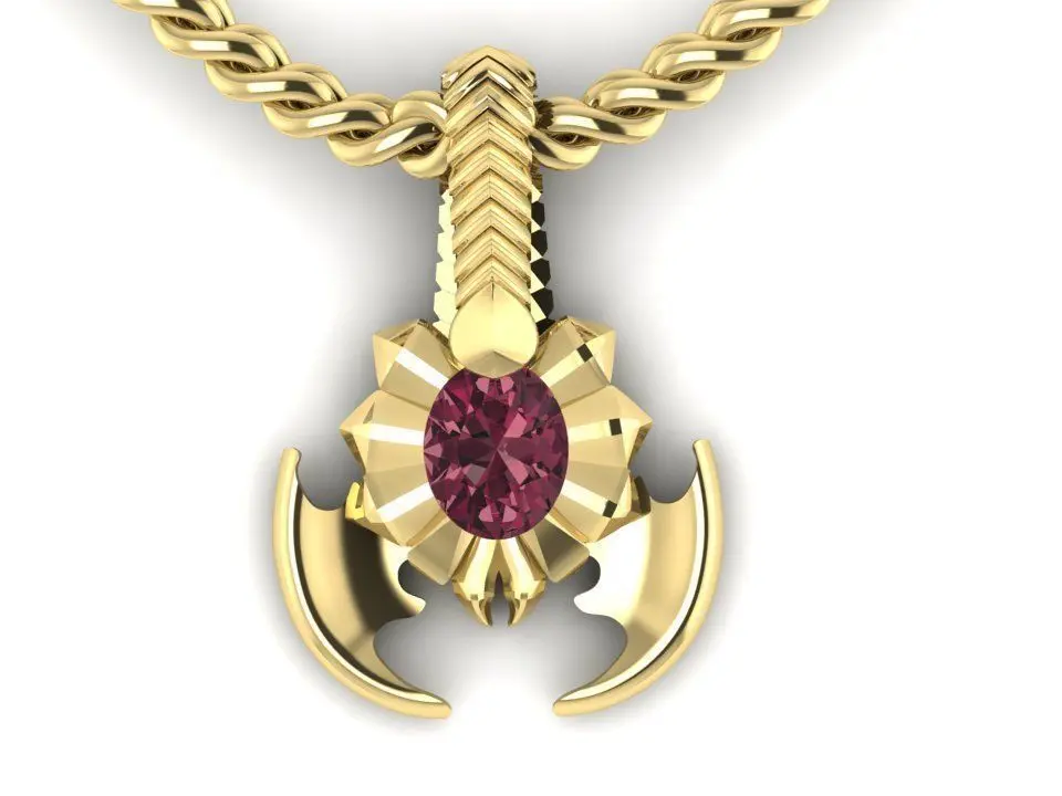 Scorpion pendant. 14k gold weith 9.8 gr. gem-oval 10x8mm.