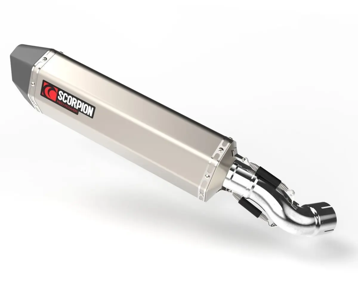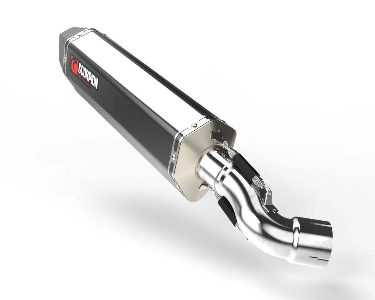 This is a detailed model of a Scorpion Serket Parallel motorcycle exhaust. This model in particular is specifically for a Suzuki V-Strom 1000, but can be used as a visual representation for most motorcycle projects. The model is shown in carbon fibre and titanium, but can also represent the stainless steel version. The model includes the silencer/muffler, link pipe, spings, and spring covers. Dimensions were measured from the real product.