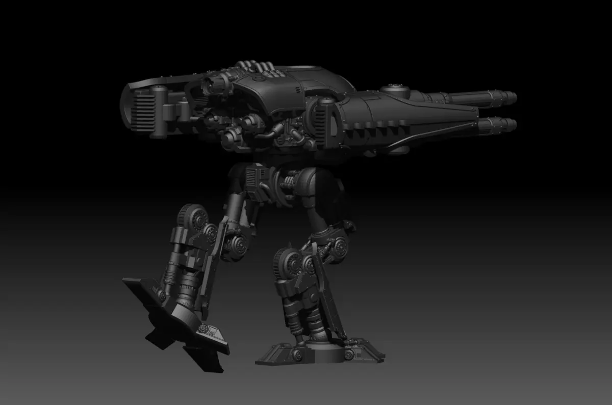 Also included is a 1/4 size version which is divided into larger chunks (eg a whole leg/arm aseembly) for ease of printing as the smaller scale. This scale is intended for games such as Adeptus Titanicus or Epic.
