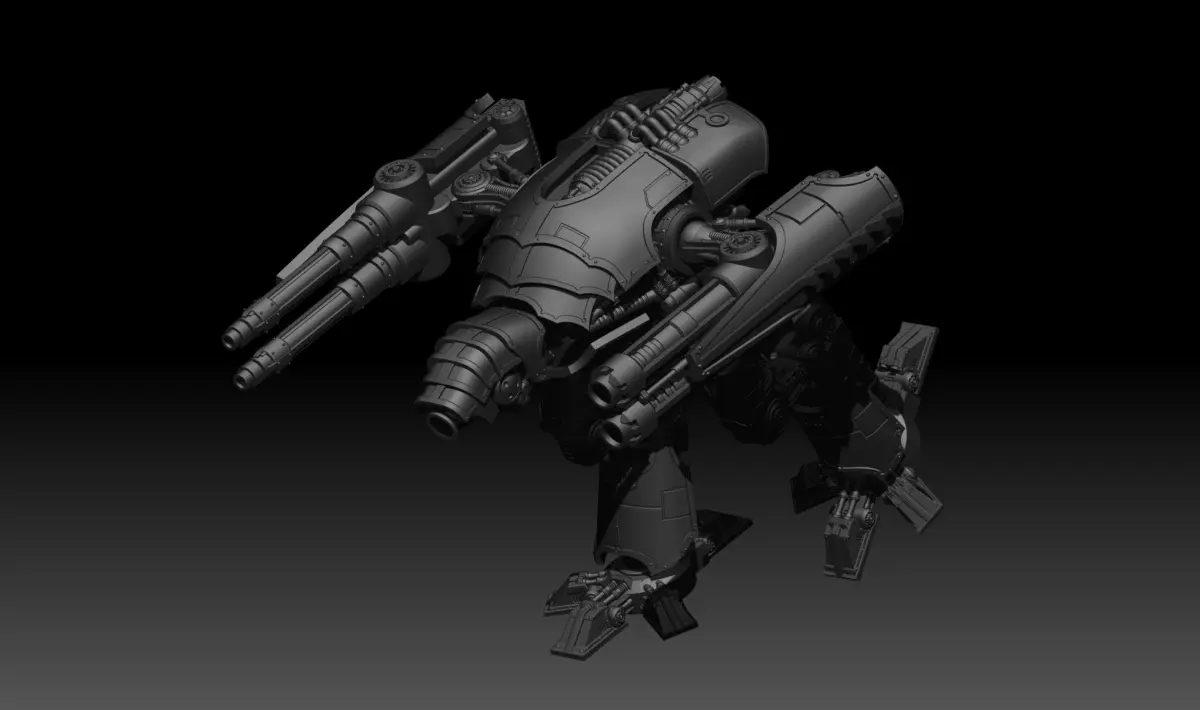 It is buildable in many poses and features an interior accessed through a removable carapace and large enough to place 28mm minatures inside.